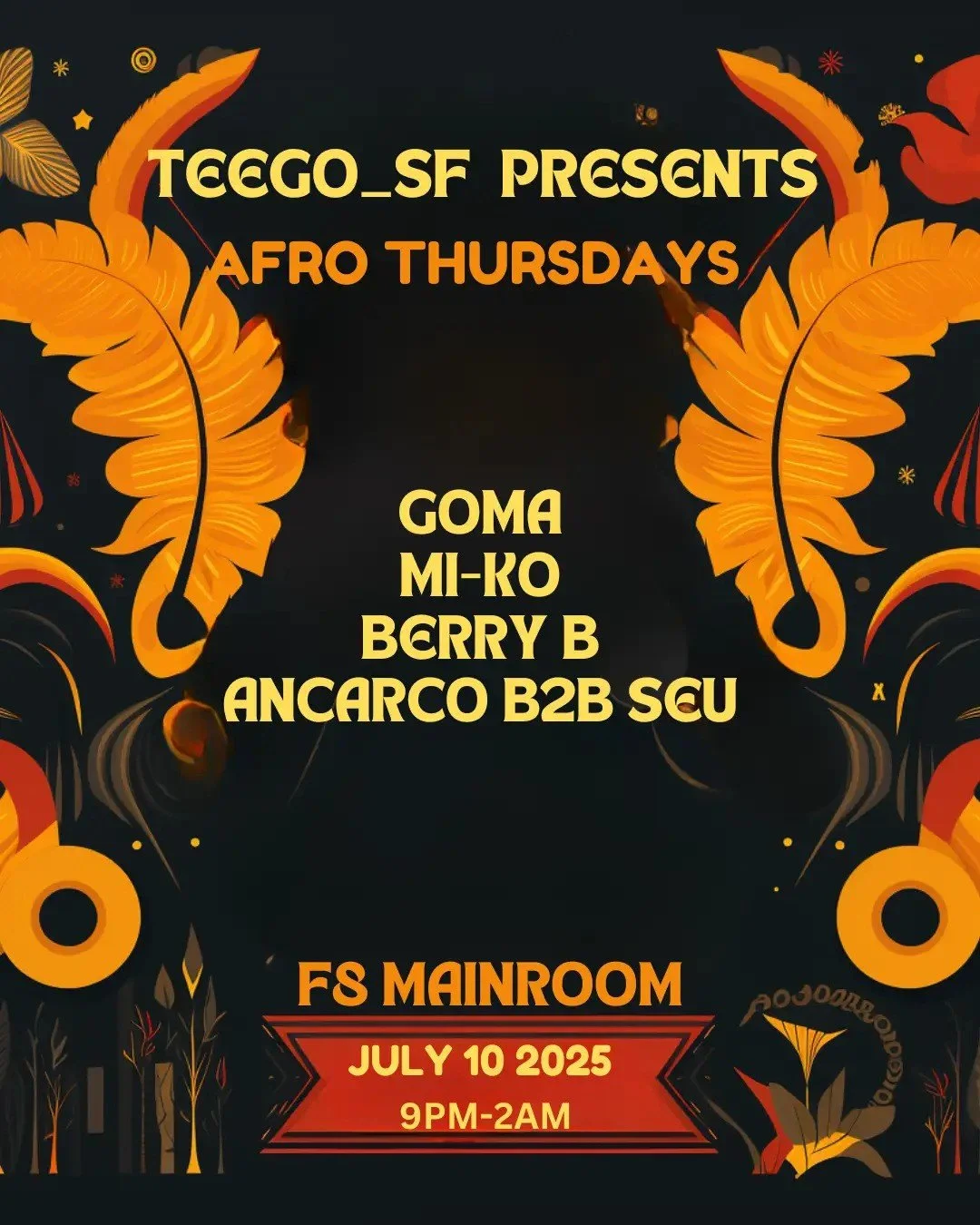 Afro House Thursdays Thursday, July 10, 2025 9:00 PM 21:00 Friday, July 11, 2025 2:00 AM 02:00 F8 1192 Folsom San Francisco United States (map) Google Calendar ICS FREE w/ RSVP b4 11pm Teego SF presentsAfro Thursdaysft.Goma Mi-Ko Berry B Ancarco B2B SeuFree entry b4 11PM w/ RSVP 21+