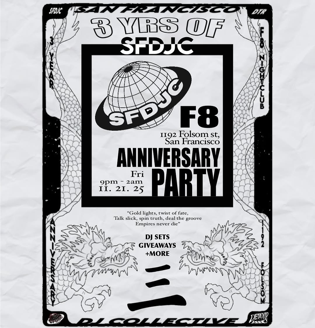 Join us on Friday, November 21st at F8 main room for a very special night of dancing, giveaways and groovy tunes.