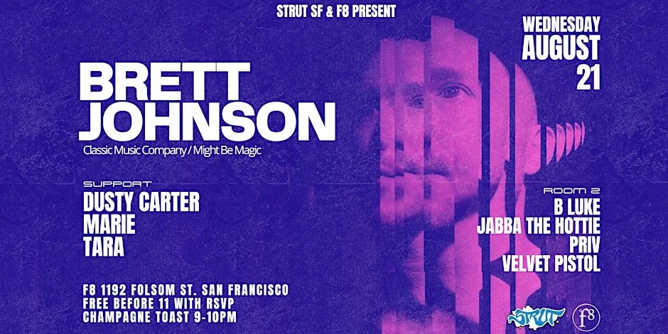 Wednesday night, August 21st Strut SF & F8 Present legendary DJ, and Producer Brett Johnson from Austin, Texas!