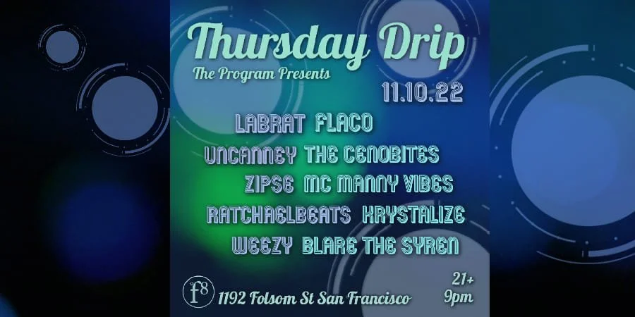 The Program Presents another stacked Thursday Drip on November 10th at F8. Highlighting some of the best bass the Bay has to offer with a hefty side of DNB. Doors at 9pm. 21+